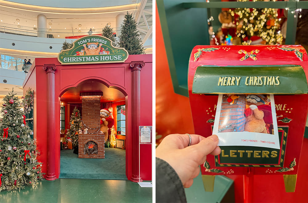 가장 인기 많은 ‘크리스마스 하우스 포토존’은 이용 시간이 5분으로 제한된다. 체험 존도 마련했다. 탐스프렌즈의 소셜미디어 계정을 팔로잉하고 인증하면 루카 인형 키링, 2026년 탐스프렌즈 캘린더, 루카 마우스패드, 루카 포스트잇을 증정하는 이벤트를 진행하며, 크리스마스 팝업에서 촬영한 사진을 해시태그와 함께 인스타그램에 업로드하면 추억을 간직할 수 있도록 즉석에서 포토카드를 출력해 주기도 한다. 하이라이트는 매일 오후 6시와 7시 정각에 진행되는 ‘크리스마스 라이트쇼’. 2층과 3층 카페가 여유롭게 쇼를 관람할 수 있는 명당이다.