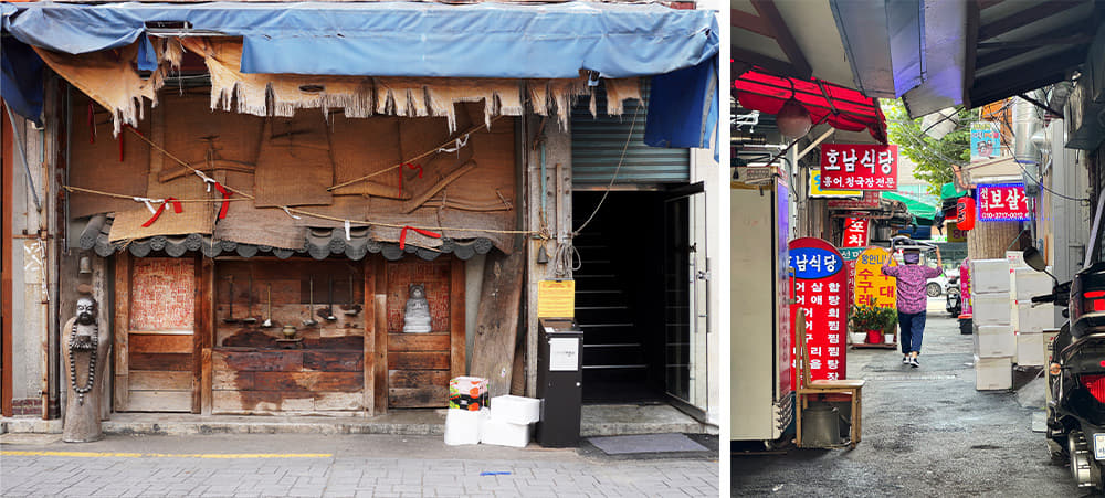 거의 사라졌지만 지금도 신당동에는 몇 개의 신당이 남아 있고, 신당 콘셉트의 바도 생겨났다. 신당동 이야기는 서울중앙시장과 싸전거리로 이어진다. 신당역 1번과 2번 출구 사이에는 서울중앙시장이 있다. 과거 ‘성동시장’이라 불렸던 이곳은 남대문시장과 동대문시장에 이어 서울 3대 시장으로 불렸을 정도로 규모가 컸다. 한국전쟁 이후에는 곡물시장으로 번영했는데, 현대그룹 창업주 故 정주영 회장의 첫 사업인 쌀가게도 신당동 싸전(곡식)거리에 있었다. 한때 서울 시민이 소비하는 양곡의 70% 이상이 거래될 정도였다고 한다.