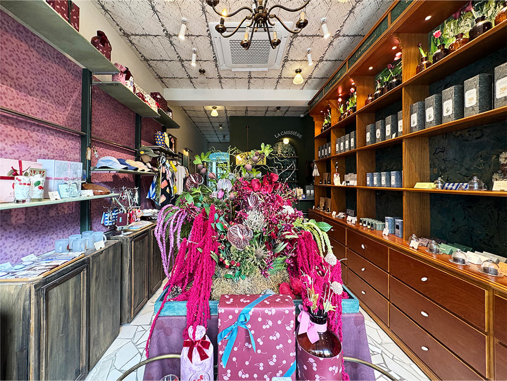 매장은 정면이 좁고 안쪽으로 긴 형태다. 1층에는 디퓨저와 룸스프레이 등 자체 제작한 향 아이템을 중심으로 클래식하고 감각적인 소품이 높여 있고, 2층에는 그릇, 러그, 티코스터, 패브릭 포스터, 의류 등 리빙 소품이 가득하다. 1층과 2층 사이는 ‘세드릭’의 취미생활을 보여주려는 듯 가드닝 관련 아이템을 전시했다. 자체 제작한 클래식하고 감각적인 아이템과 유럽 곳곳에서 수집한 빈티지 아이템이 자연스럽게 어우러져 구경하는 재미가 쏠쏠하다. 시즌 별로 과일이나 식물 등 자연물을 모티브로 다양한 소품을 제작하는데, 티셔츠, 앞치마, 그릇, 키링, 포스터, 벽지 등을 제작하며 패키지와 인테리어까지 통일성 있게 바뀐다.