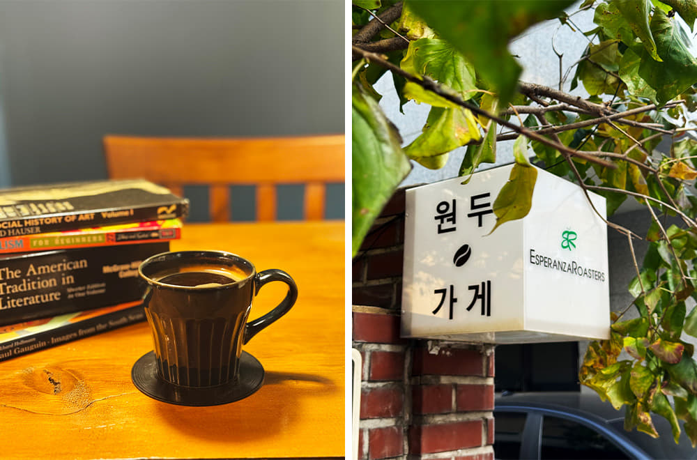 에스페란자 로스터즈는 햇생두를 고집하는 로스터리 카페다. 커피 생두는 10~12%이 수분을 지닌 농산물이라 생산 또는 유통 과정에서 곰팡이균에 노출되거나 해충 알이 남아 있을 수밖에 없다. 고온에서 로스팅해도 균이나 해충이 살아 있는 경우가 대부분. 이곳에서는 매일 아침 생두 상태에서 손으로 일일이 결점두를 골라내고 로스팅해 곰팡이 독소 없는 깨끗한 커피를 선보인다. 그래서인지 커피 맛이 깔끔하고, 커피 마신 뒤 입안에 남는 텁텁함이 전혀 없었다. 결점두는 모아서 따로 로스팅한 다음 탈취제로 사용한다고 한다. 다품종인 원두를 소량씩 선보이는 것도 특징.
