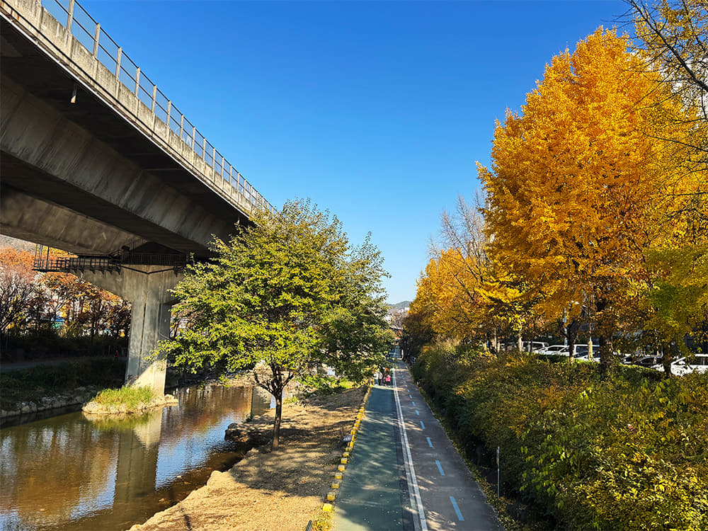Autumn falls on Hongjecheon, the scenery enjoyed through Ttareungi