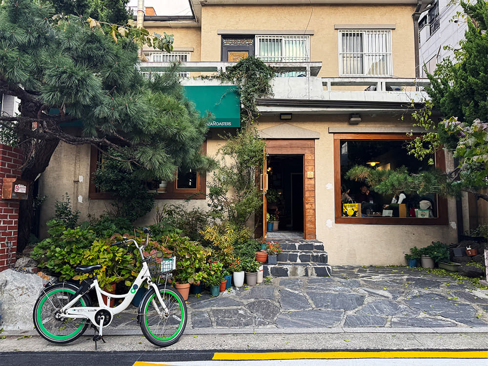 노트북을 들고 작업하기보다 책과 함께 커피향을 음미하기 좋은 카페다. 다음으로 소개될 프렌치비스트로 ‘꼭시넬’ 근처에 원두 가게를 함께 운영한다. 주인장이 커피뿐 아니라 영문학을 전공해 영어에 능통하다.