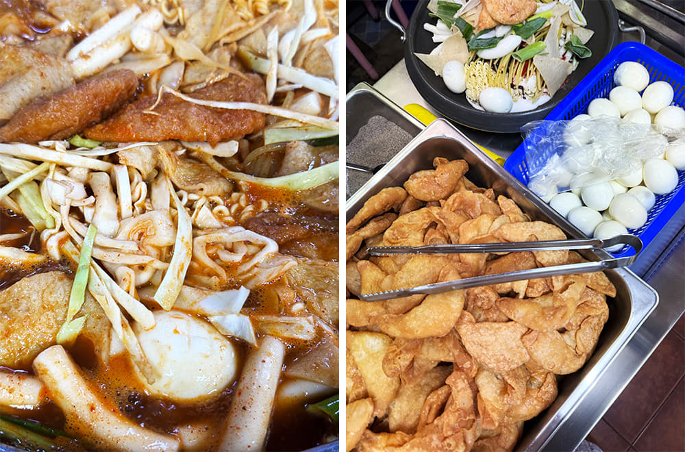 신당동 하면 조건 반사처럼 떠오르는 떡볶이. 얇은 냄비에 떡과 소스, 다양한 토핑을 얹어 끓여먹는 신당동식 즉석 떡볶이는 쫄깃한 밀떡과 매콤하면서 감칠맛 강한 고추장 소스의 조화가 예술이다. 1953년 한국전쟁이 끝나고 마복림 할머니는 신당동에서 떡볶이를 팔기 시작했다. 떡에 고추장과 춘장을 섞은 소스를 넣고 버무려 팔다가 한 여학생이 라면을 가져와 같이 끓여 달라고 한 것이 계기가 돼 다양한 사리를 추가한 즉석 떡볶이가 탄생했다고 한다. 할머니의 떡볶이가 인기를 끌자 떡볶이집이 들어서기 시작했고, 1980년대에는 DJ박스 등의 문화가 더해지며 전성기를 누렸다. 지금도 주말이면 추억을 찾아 신당동 떡볶이 타운을 찾는 이들로 붐빈다.