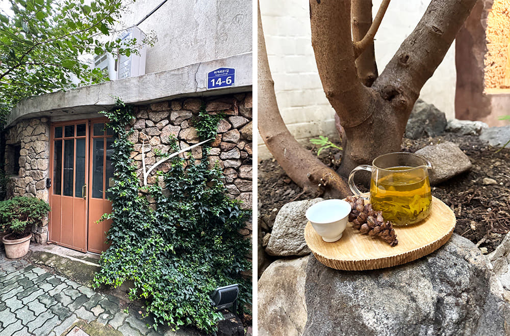 1층 중앙에는 수령이 1백 살이 넘는 무화과 나무를 심었는데, 리모델링 과정에서 2층 바닥이 무너지면서 드러난 공간을 중정으로 만들었다고 한다. 신발을 벗고 들어가야 하는 2층은 대부분의 좌식 테이블이 대부분이고, 한국 전통의 멋이 느껴지는 공예품과 민예품을 놓아 갤러리처럼 꾸몄다. 중정으로 무화과나무가 보이고, 바깥으로 통하는 야외 정원이 있어 초록의 싱그러움을 더한다. 스페셜티 커피 외에 유기농 티가 주력 메뉴. 제철 유기농 식재료를 손 반죽한 수제 스콘, 제주 유기농 목장에서 가져온 플레인 요거트에 제철과일과 유기능 곡물 후레이크 등을 더한 요거트볼, 자연농법으로 만든 무정과 세트, 유기농 아이스크림 등 유기농 디저트와 곁들이기 좋다.